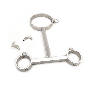 Collar Bdsm con esposas para sexo Acero inoxidable Tipo T Bondage Restricciones Bdsm Juegos para adultos Juguetes sexuales Tornillo abierto